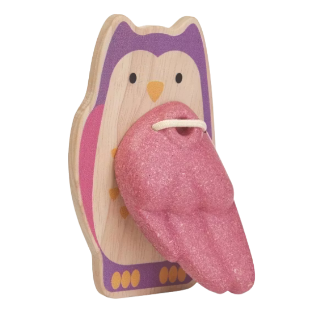 En färgglad liten uggla som både låter och charmar! Tryck ihop ugglan mellan handflatorna så hörs ett klick! – lika kul att spela med som att utforska. Perfekt för att introducera barnet till musik, ljud och takt på ett lekfullt sätt.