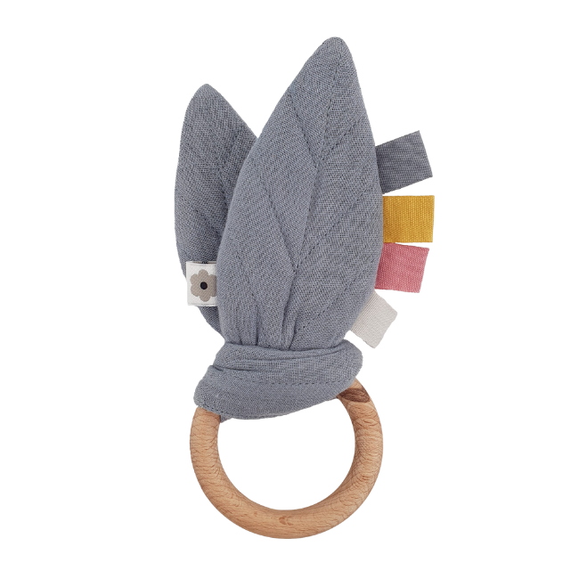 De färgglada lapparna på bladen lockar till lek och greppträning, och den släta ringen i FSC-certifierat bokträ är perfekt formad för små händer.