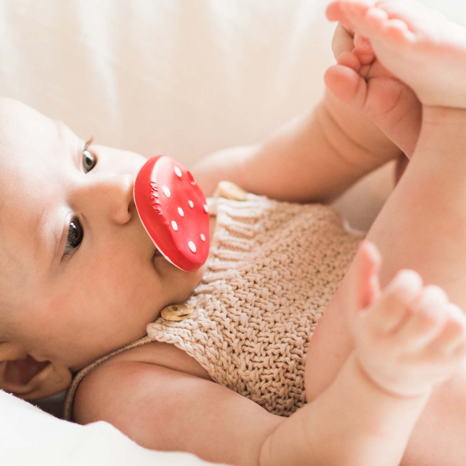 - Liten flugsvamp i naturgummi som är mjuk och trygg att tugga på